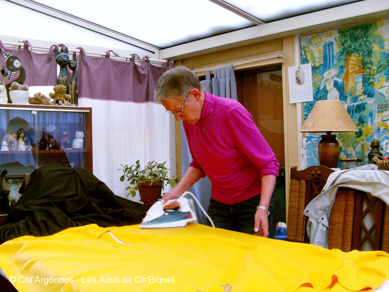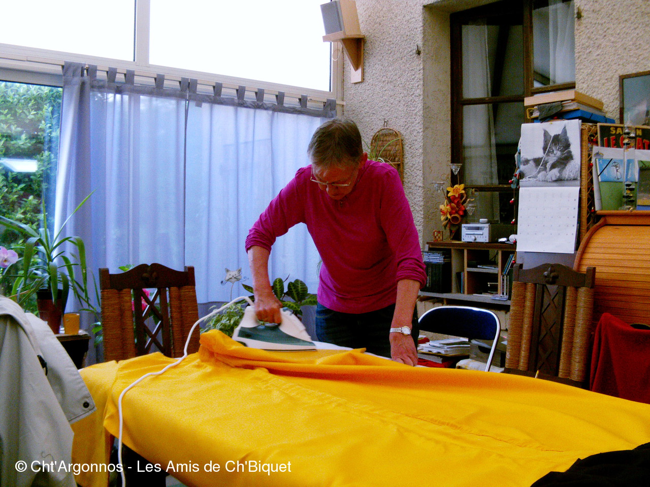 Notre trésorière Monika également mon épouse (!) adore notre géant, comme en témoigne les photos où on la voit repasser la robe (4 mètres) de Ch'Biquet avec beaucoup d'amour... C'est autre chose que les chemises de son mari !! A ce sujet elle voudrait bien laisser sa place en la matière, comme elle nous l'a signalé lors de notre dernière assemblée générale... ALORS LES VOLONTAIRES SONT LES BIENVENU(E)S.